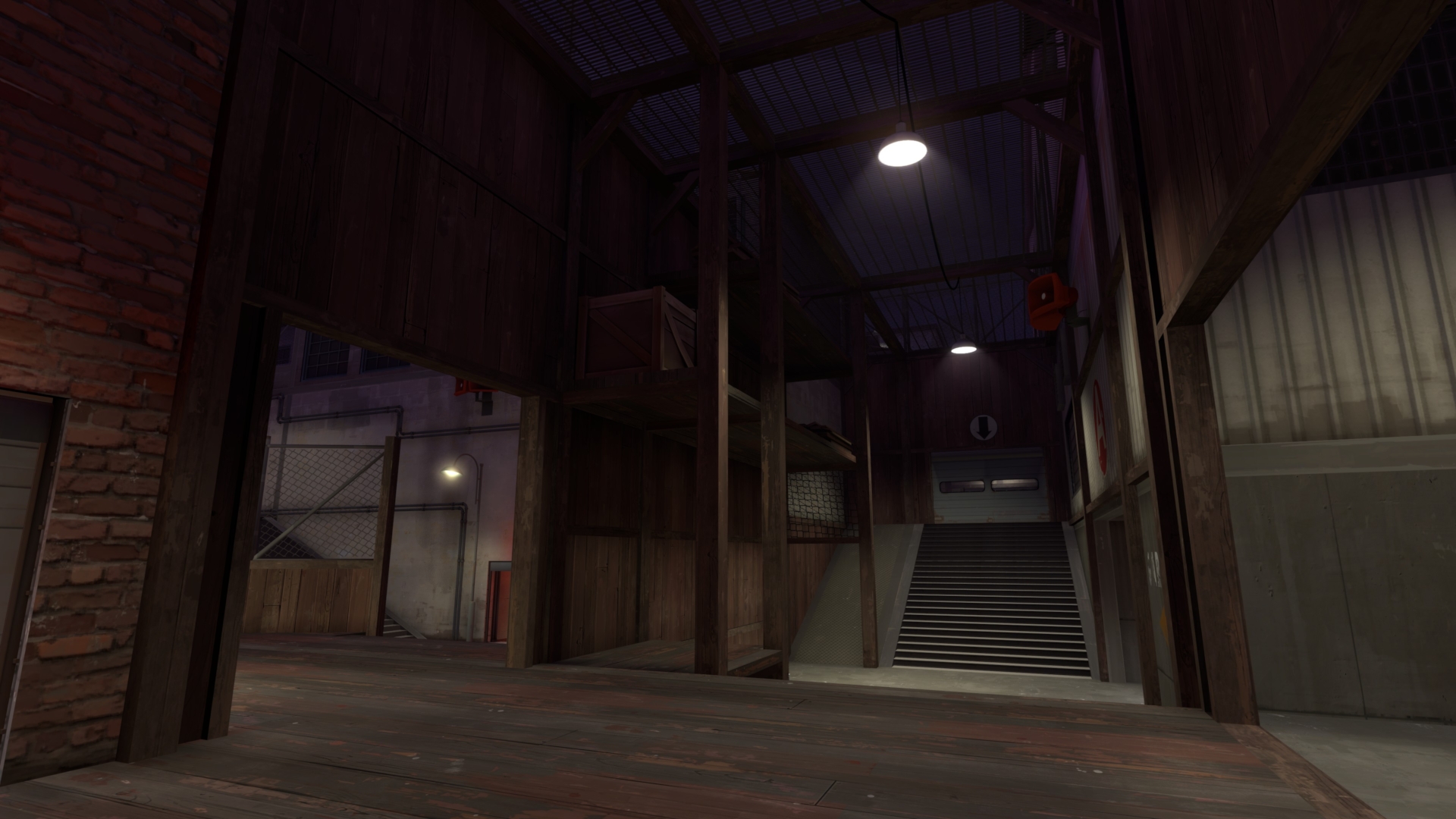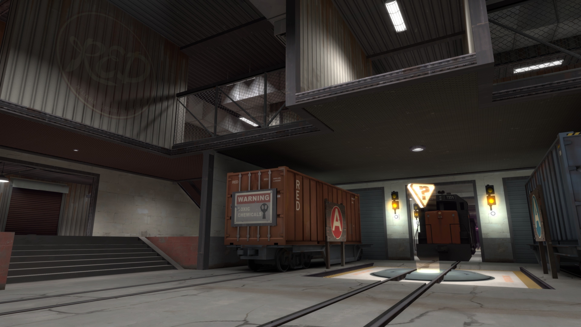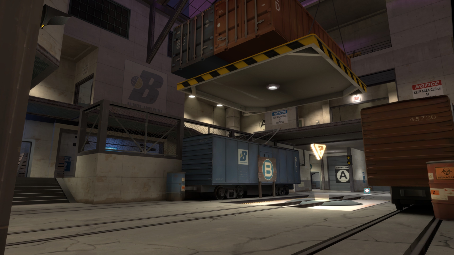 Every capture point of this Domination map is connected by a sensible, straightforward hallway — a foolish choice, since straight hallways are like catnip for freight trains, and you can expect one to come screaming through all three points every 30 seconds or so. Stick to the normal mess of catwalks and winding side paths (which confuse freight trains), or take a shortcut through the gates that briefly open to let them through. Either way, don't get hit by the trains. Especially not during mating season.