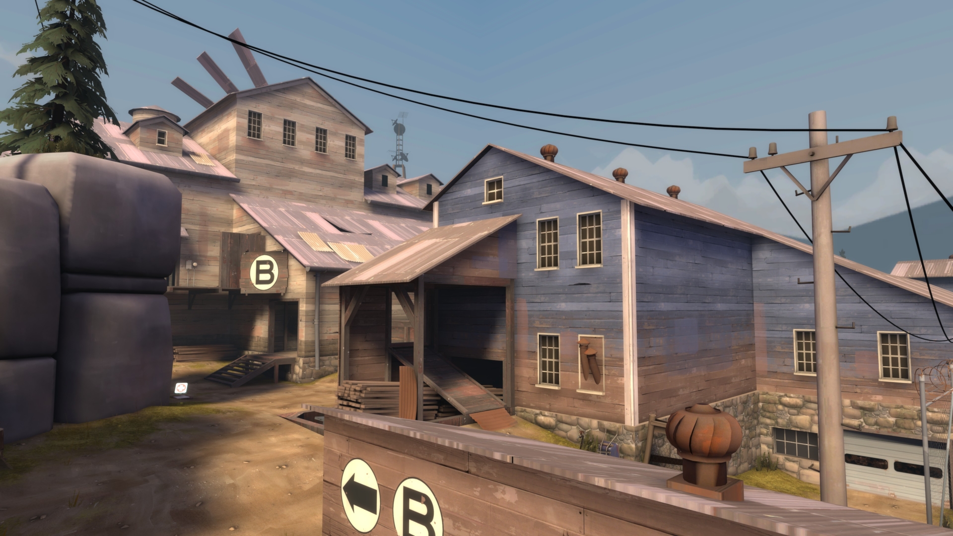 This mountaintop lumber mill may seem picturesque and innocent, but don't get taken in; it's a front for an unauthorized sawdust factory, eager to muscle in on the lucrative "lung irritant" market alongside sand, glass shavings, and Jenkins Select Coal Powder. Hold down all three points, and watch your step, unless you want to get wrapped up in the illegal sawdust operation (as the sawdust!).
